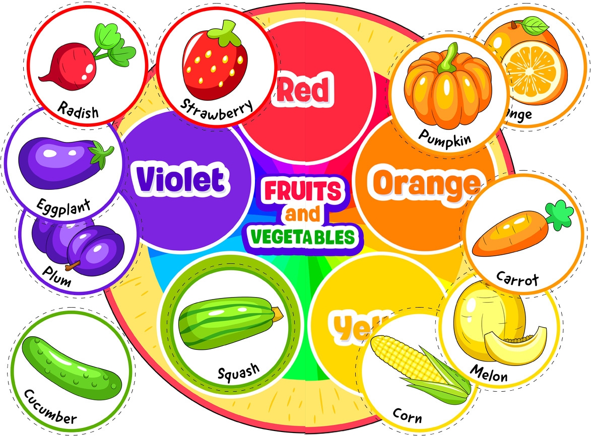 coloured pictures of fruits and vegetables