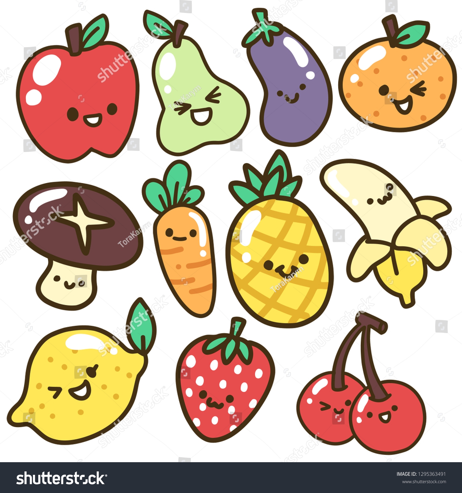 Collection Set Cute Fruits Vegetablesadorable Applekawaii Stock Vector Royalty Free 1295363491 Shutterstock