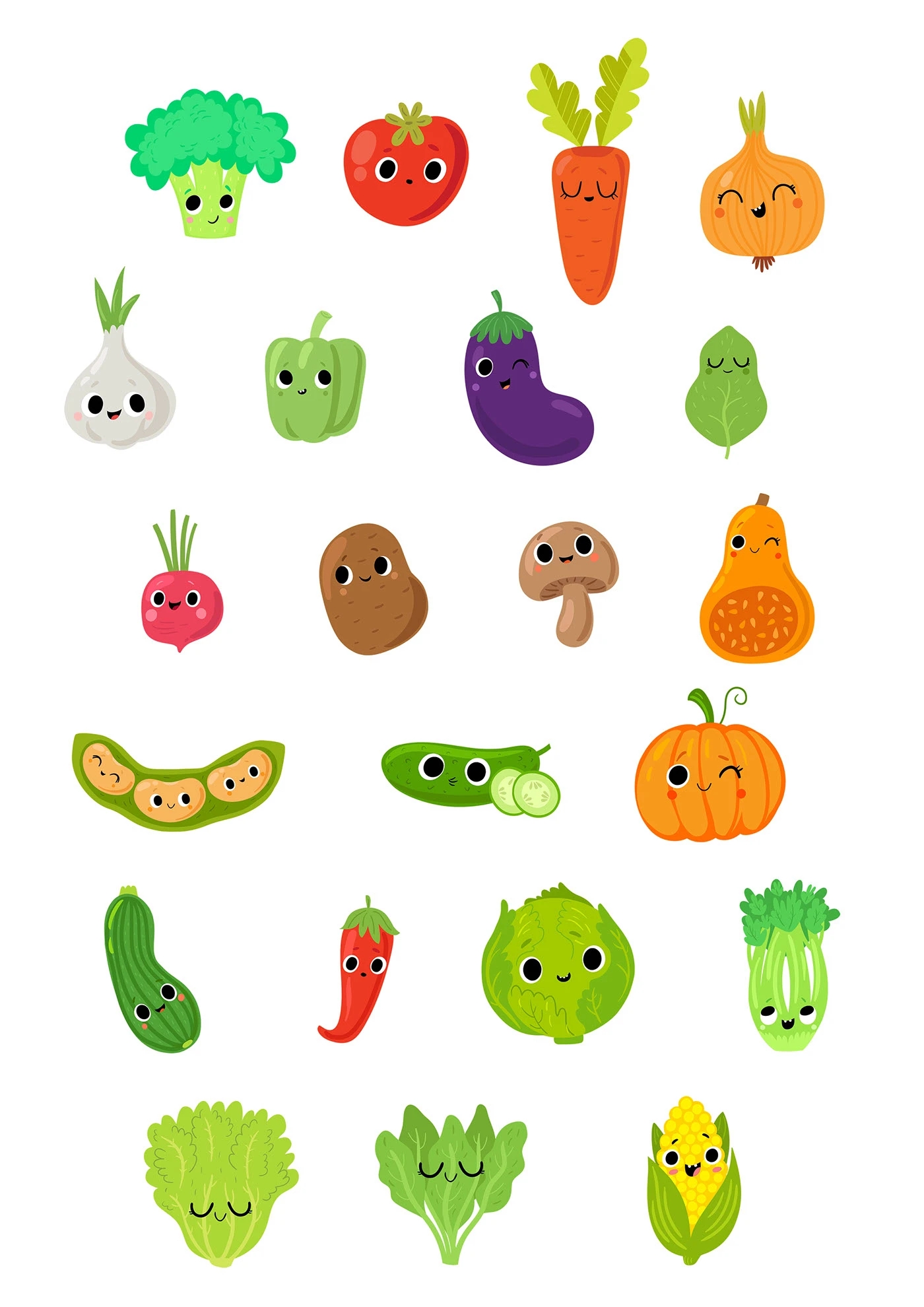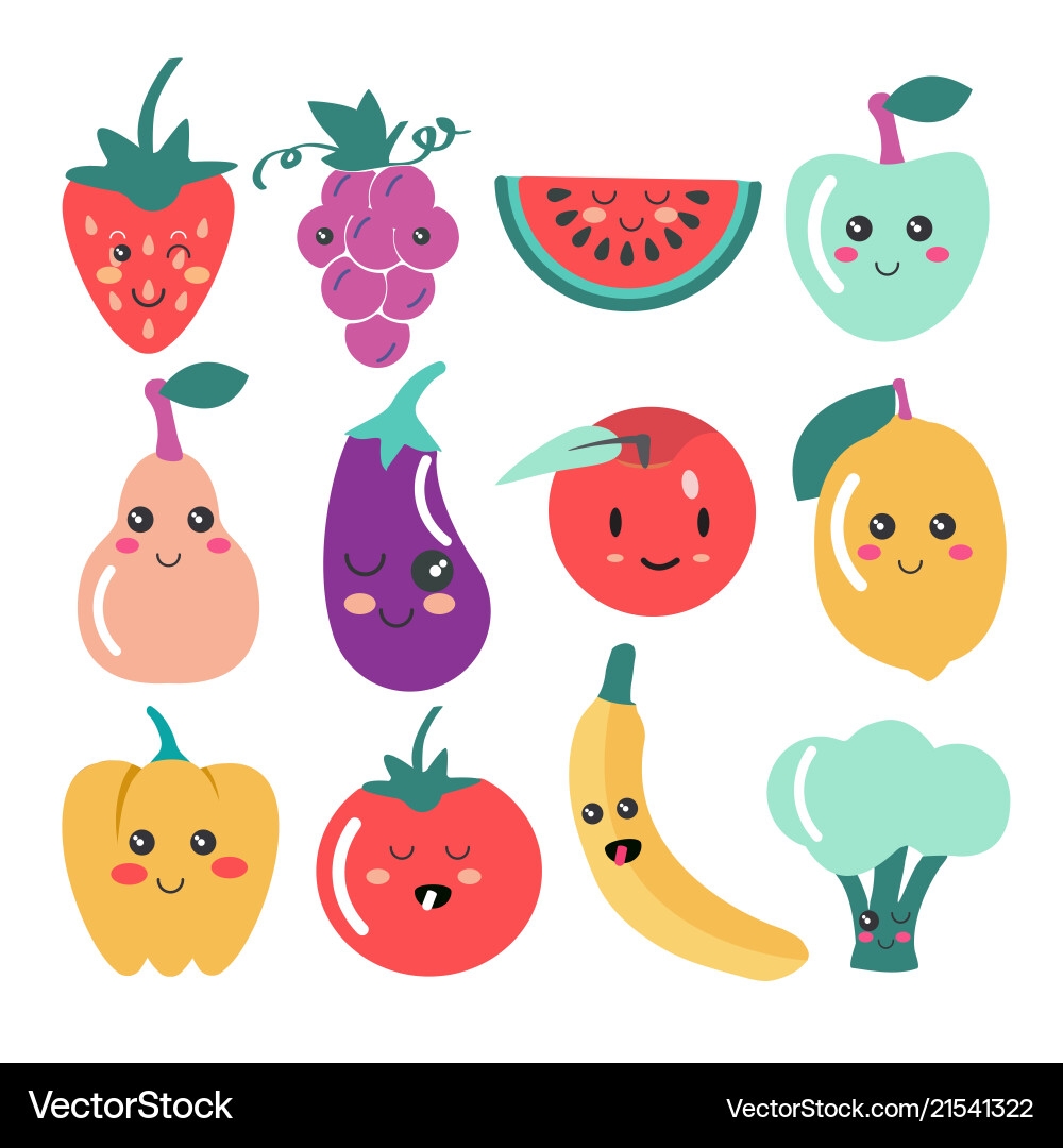 Cute Kawaii Fruit And Vegetable Icons Royalty Free Vector