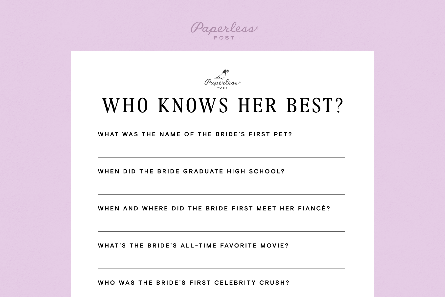 Another great printable game is the Bridal Mad Libs. This game puts a fun spin on the classic word game, allowing guests to fill in the blanks with hilarious and sometimes outrageous words to create a silly story about the bride-to-be. It’s a great way to get everyone laughing and breaking the ice at the party.
