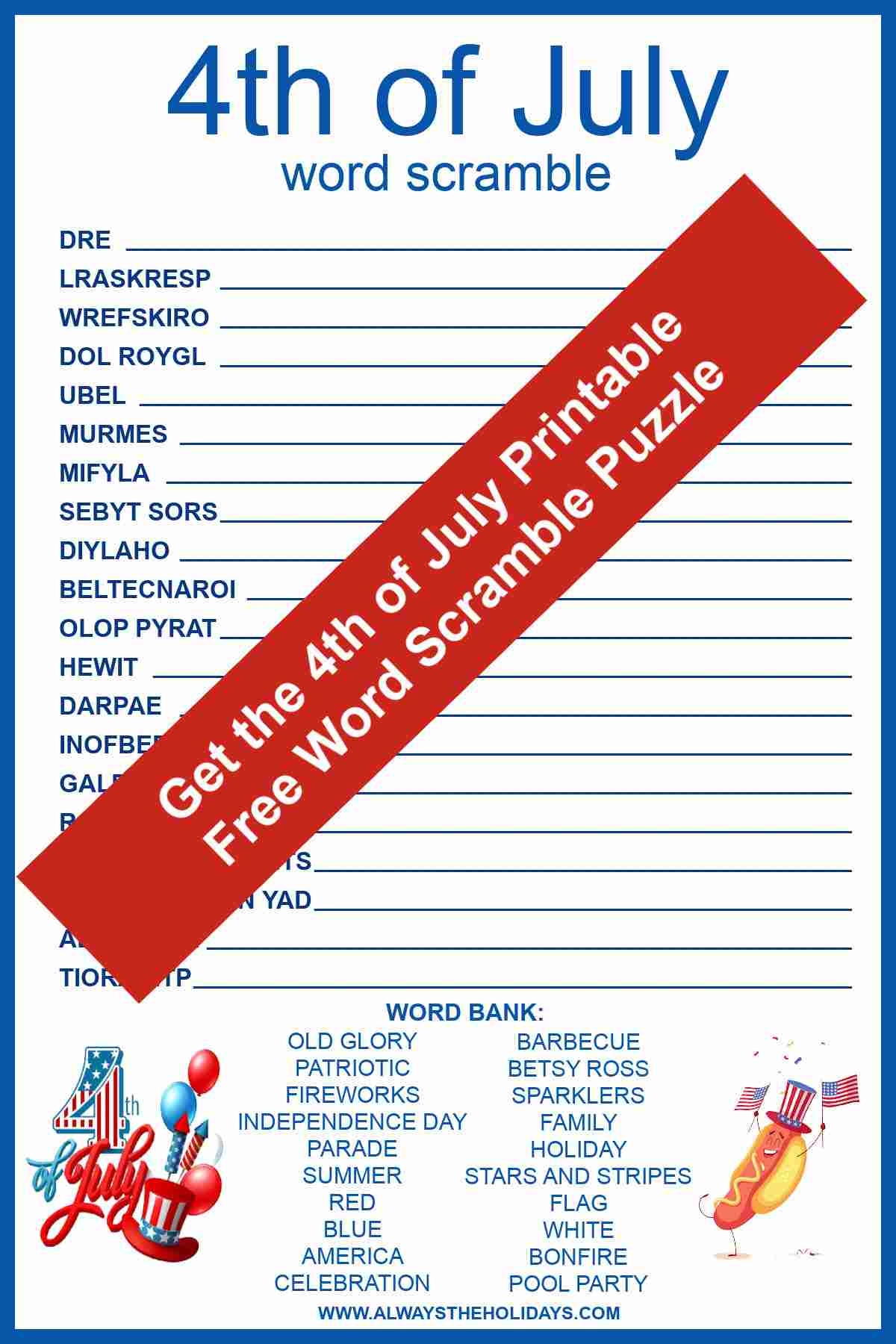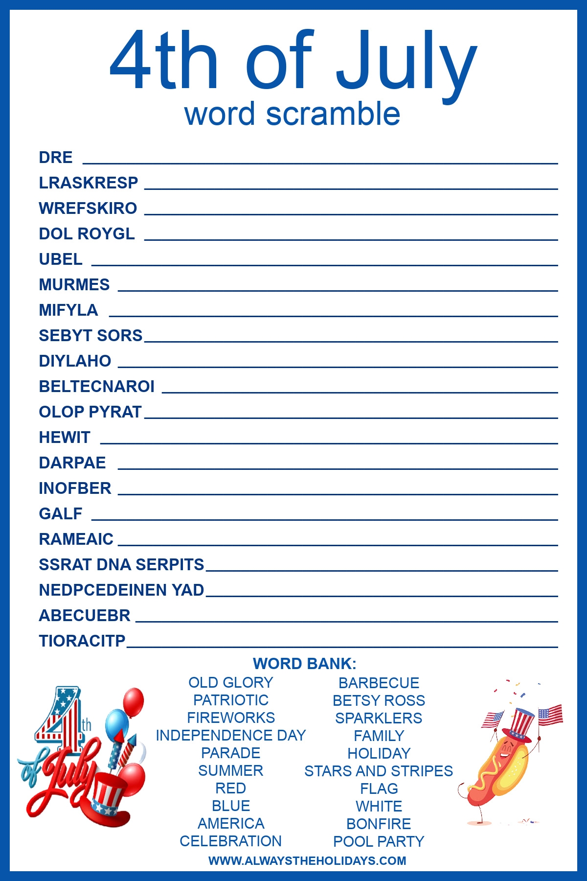 So, this 4th of July, why not add some festive word games to your festivities? With free printable options available online, it’s easy to find a variety of entertaining and engaging word games that will keep your guests entertained and excited. Whether you’re hosting a party or just spending time with loved ones, these word games are a great way to celebrate the holiday and have some fun along the way.