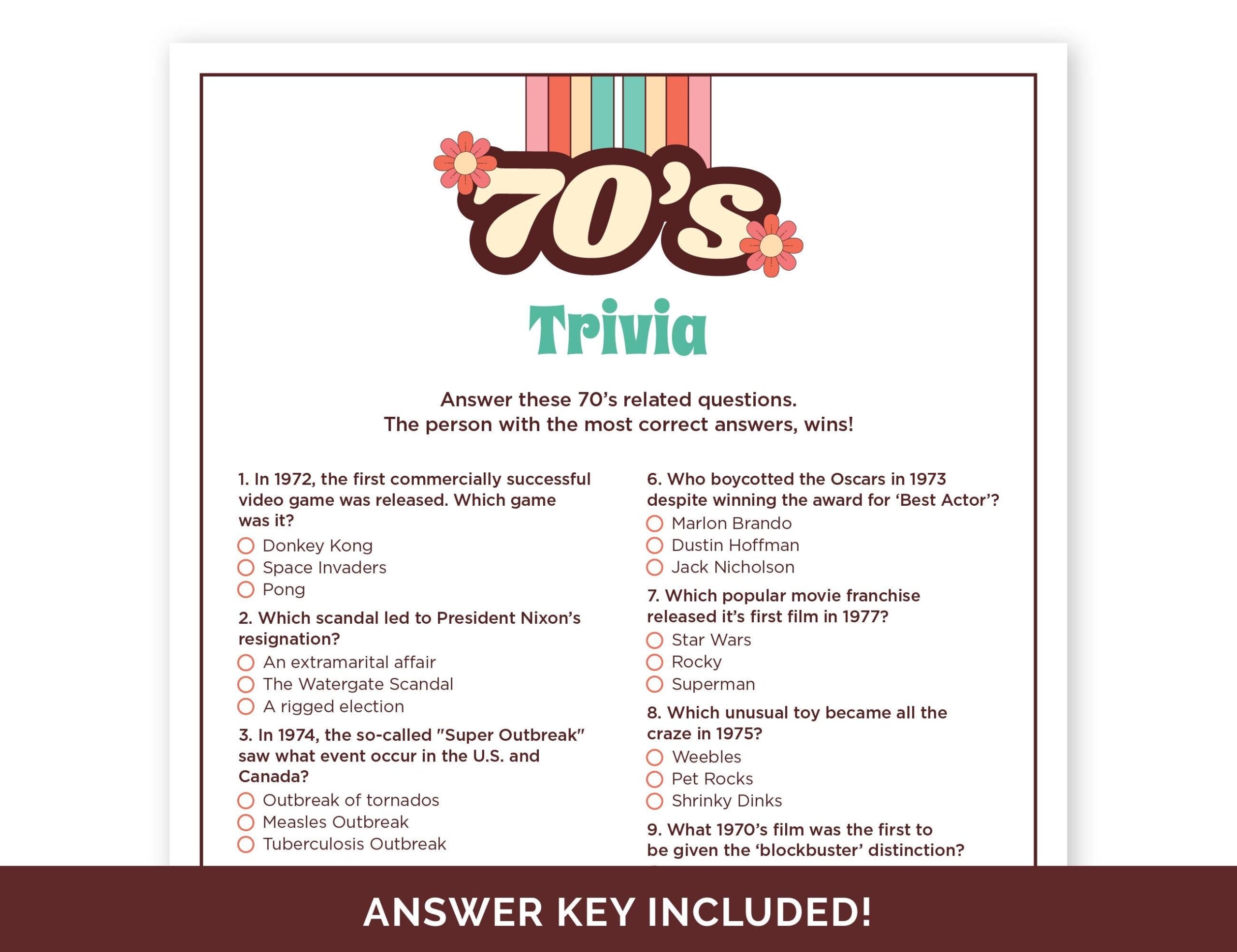 Download your free printable 70s trivia games today and get ready to test your knowledge of this iconic decade in style!