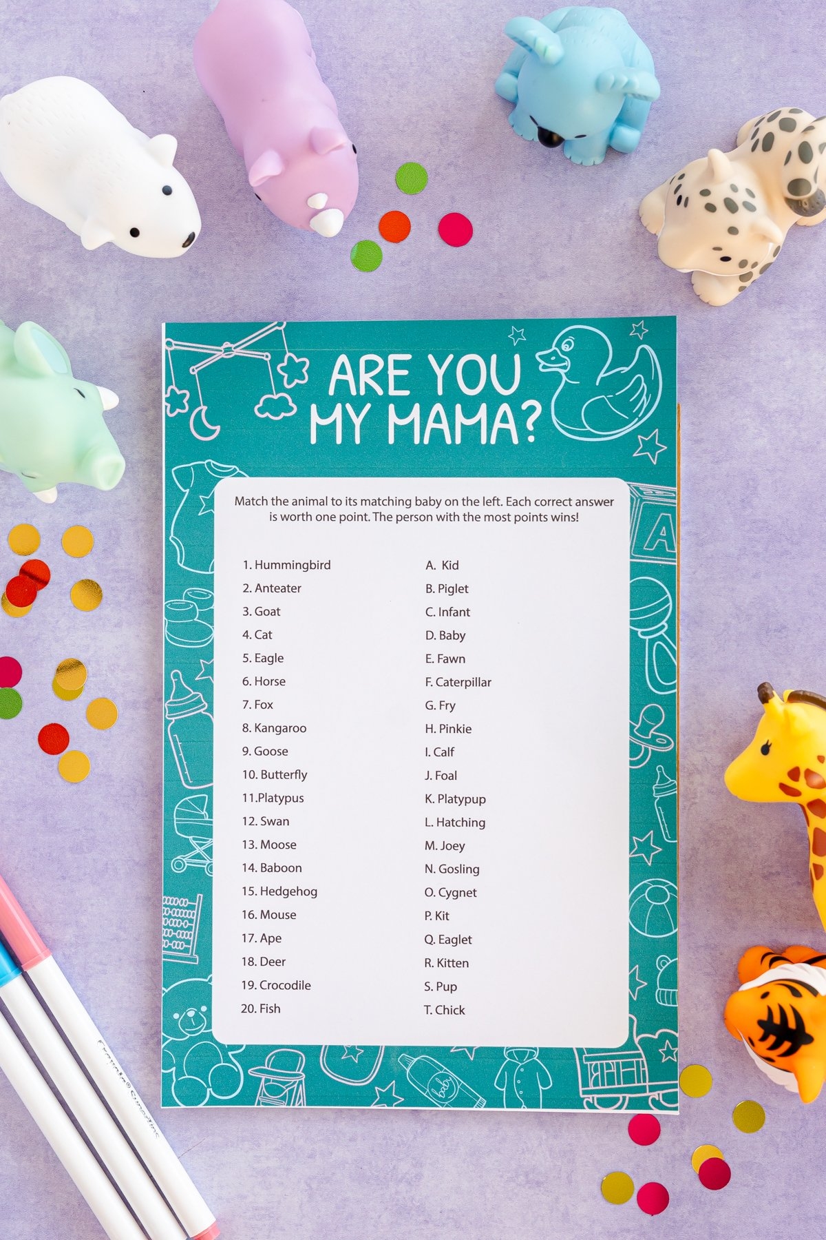 As the game progresses, guests will have a blast trying to come up with the correct answers. Some of the baby animal names may be easy to guess, while others might require a bit of brainstorming. It’s a great way to test everyone’s knowledge of animal names and have some friendly competition along the way.
