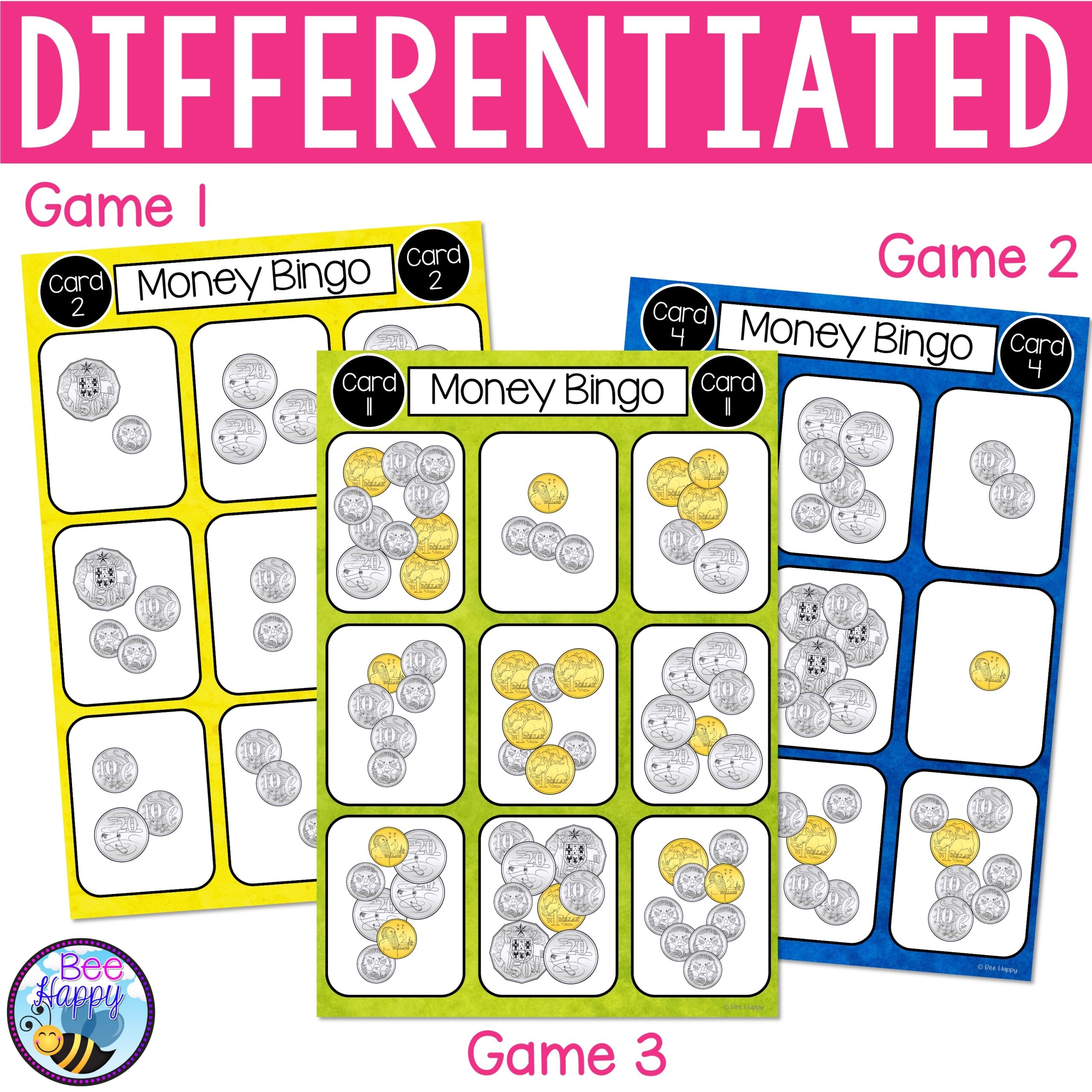 To play the game, simply download and print out the bingo cards and money cards. Cut out the money cards and shuffle them. Each player is given a bingo card with different values on it. The caller picks a money card from the shuffled pile and calls out the value. Players then have to find the corresponding coin or note on their bingo card and mark it off. The first player to complete a row or column shouts “Bingo!” and wins the game.