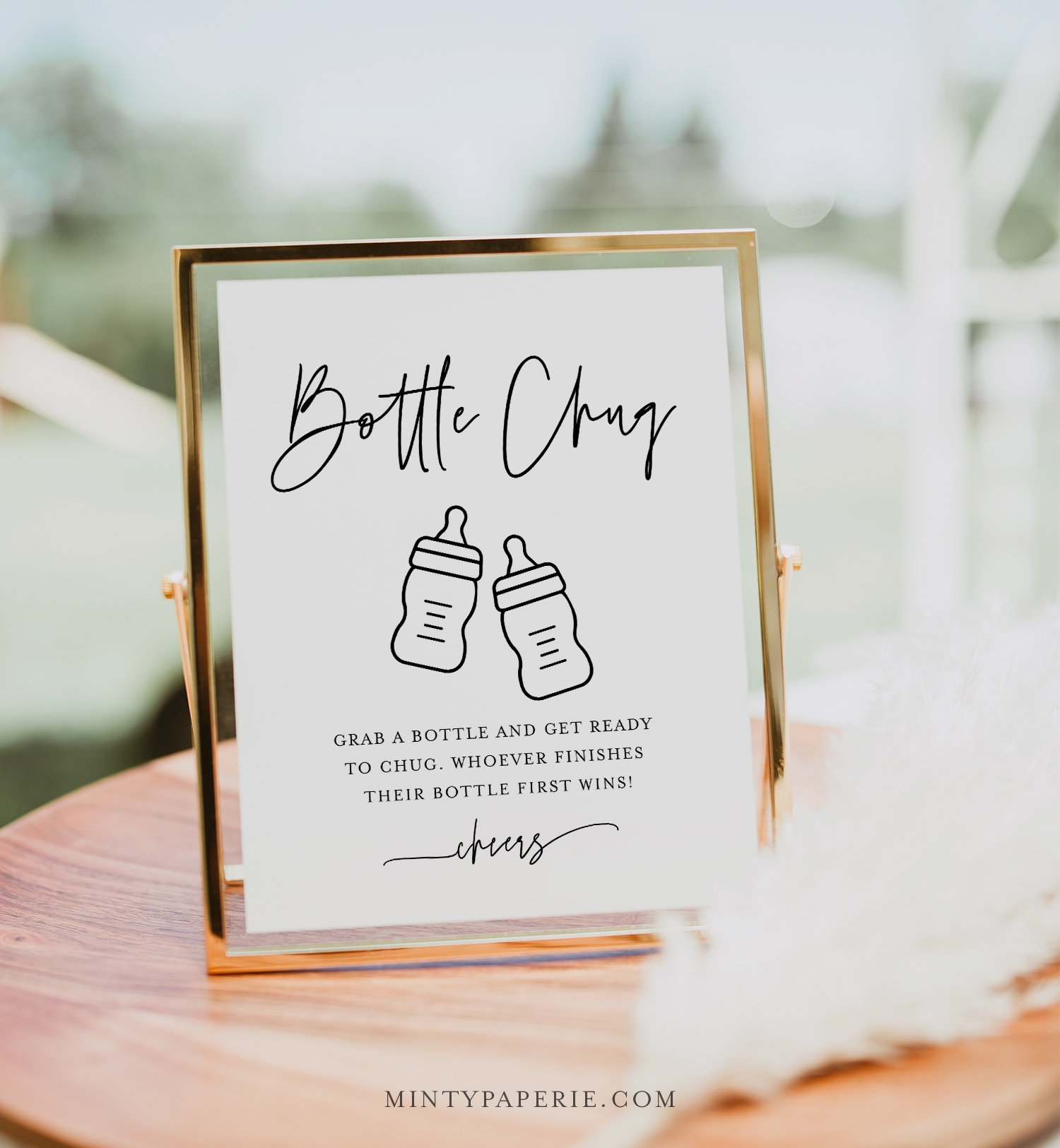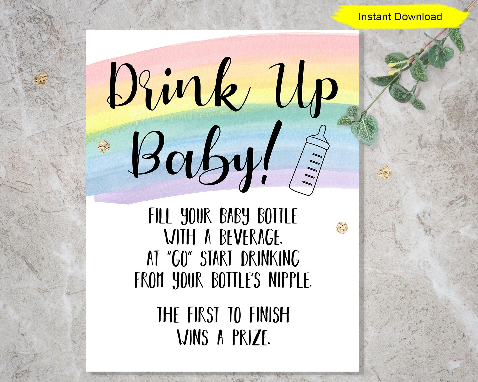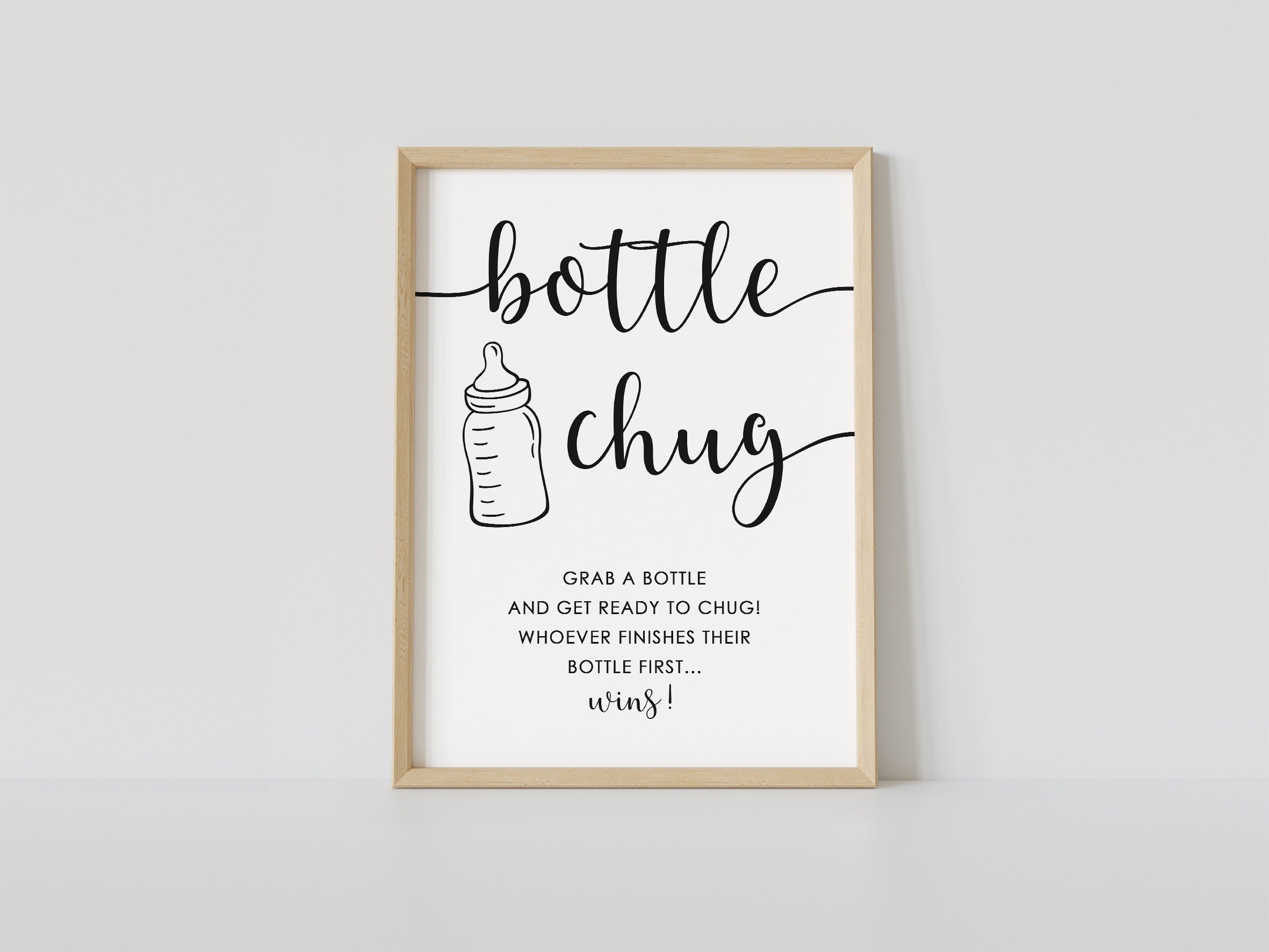 With this free printable game, all you need to do is print out the baby bottle chug game sheets and provide each guest with a baby bottle filled with their beverage of choice. Set a timer, and let the chugging begin! The guest who finishes their bottle first is the winner, and you can even award a prize to add to the fun.