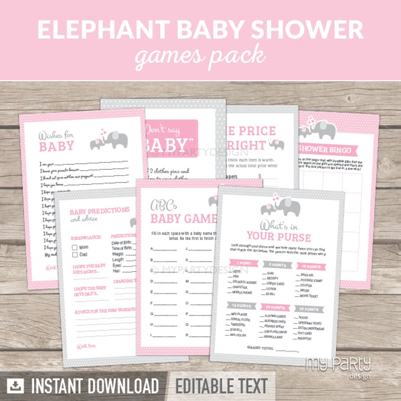 Elephant Girl Baby Shower Printable Baby Shower Games