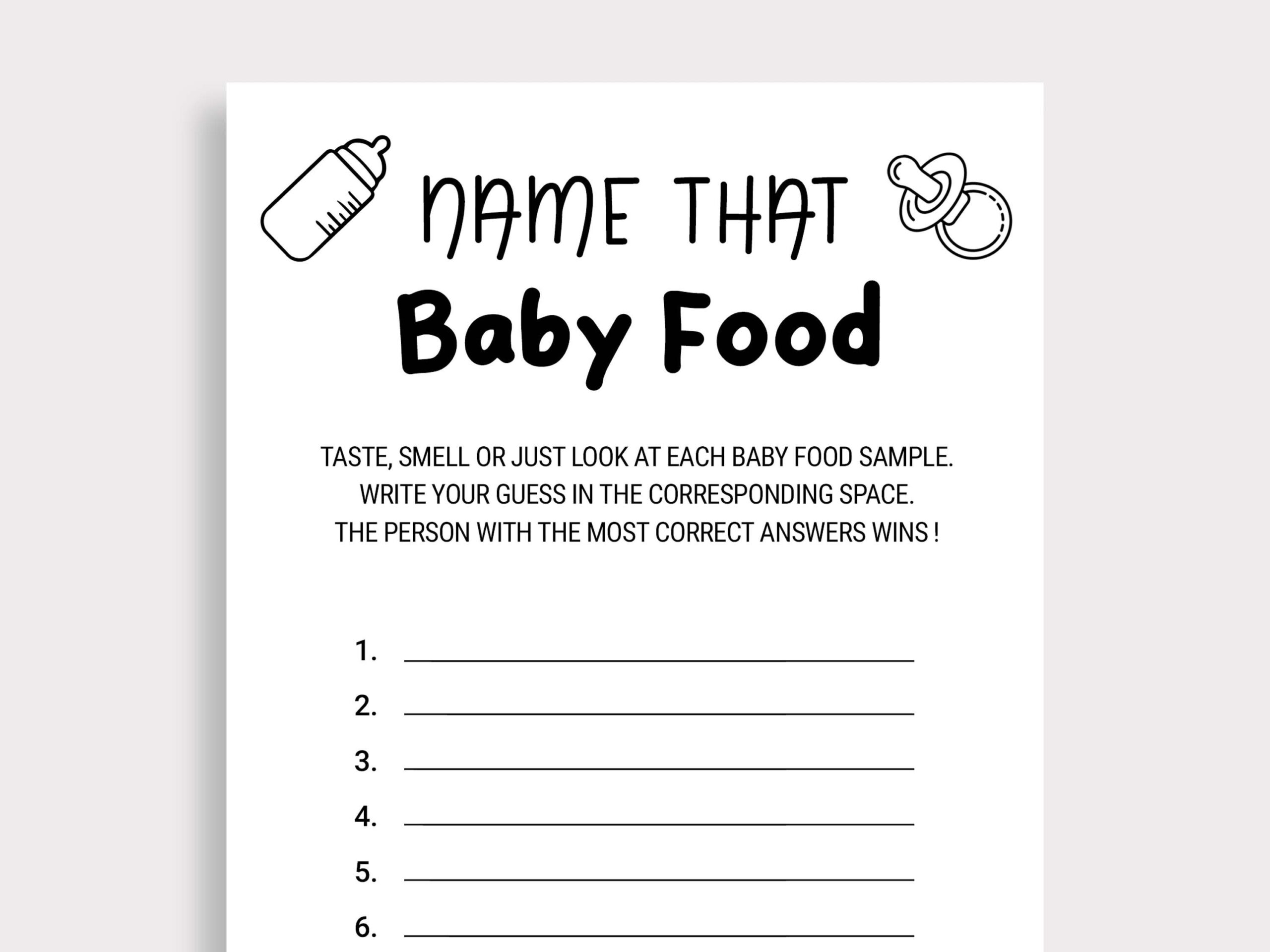 Simply print out the game cards provided below and set up a table with jars of baby food for guests to taste and guess the flavors. You can award prizes to the guests who guess the most correct answers, making it a fun and interactive activity for everyone to enjoy.