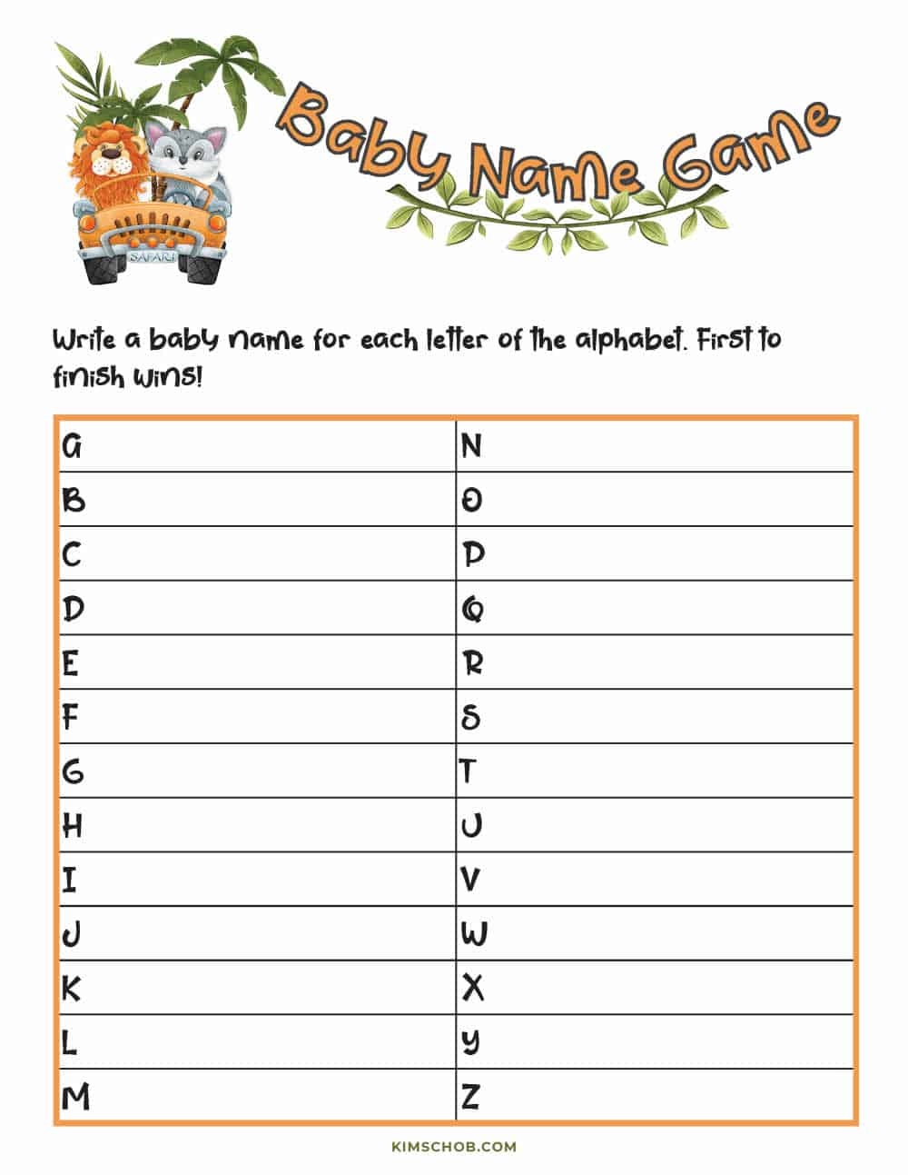 If you’re looking for something more interactive, consider the Baby Name Scramble. Guests can unscramble a list of baby names and race to see who can solve them all first. It’s a great way to get everyone involved and thinking about potential baby names for the new arrival.