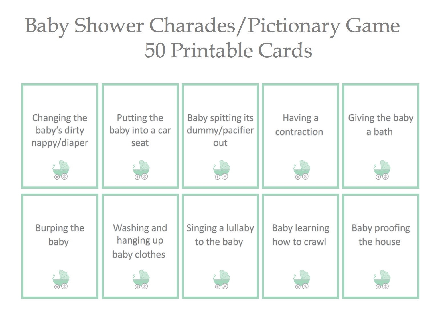 Another fun idea is to create a mix of baby-related charades and more general categories. This allows for a variety of clues and keeps the game interesting for everyone. You can include categories like “famous movie quotes,” “animals,” or “celebrity impressions” to keep guests on their toes and guessing all night long.