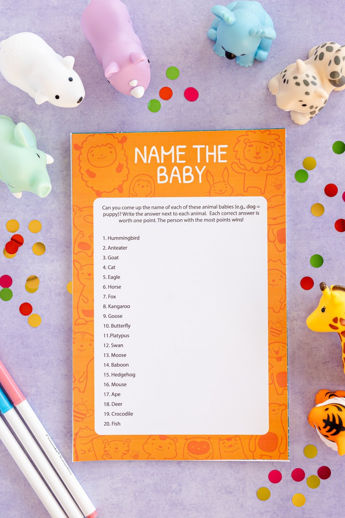 1. Baby Animal Match: In this game, guests must match the name of the baby animal to its adult counterpart. For example, “kitten” matches with “cat” and “puppy” matches with “dog.” The guest with the most correct answers wins a prize.