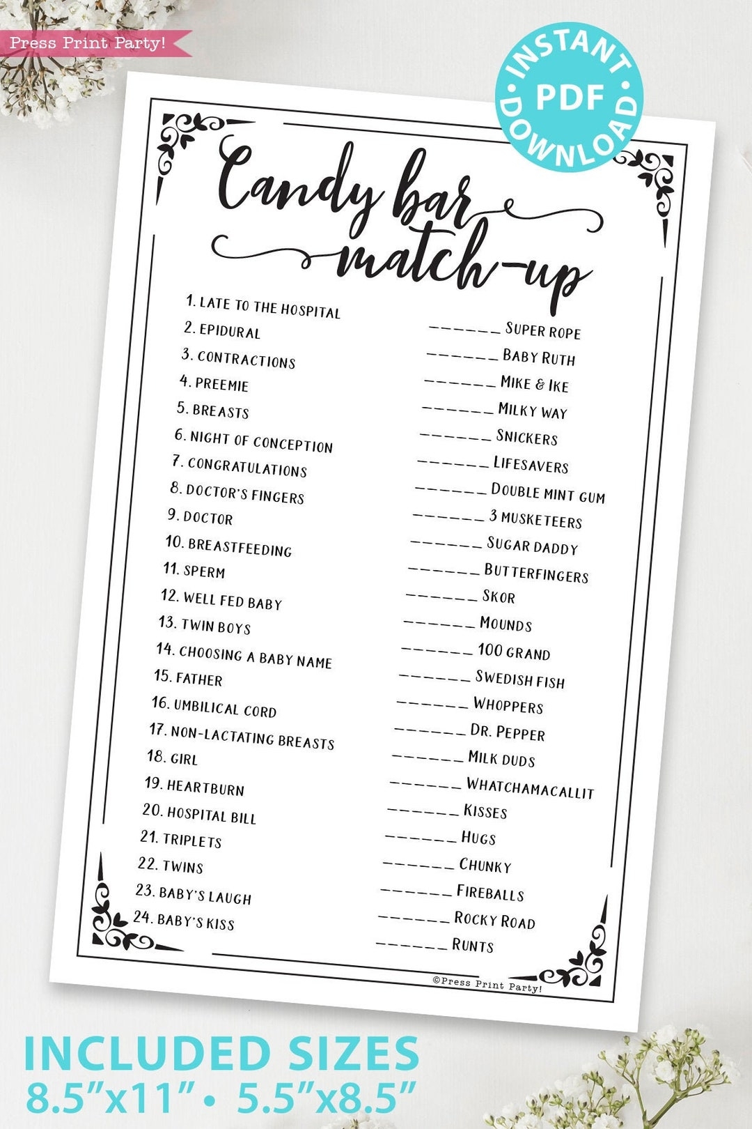 By offering a free printable version of the candy match game, you can save time and money on game supplies while still providing your guests with a memorable and enjoyable experience. Simply download and print out the game cards, gather some candy bars, and let the fun begin! Your guests will thank you for hosting such a fun and engaging baby shower.