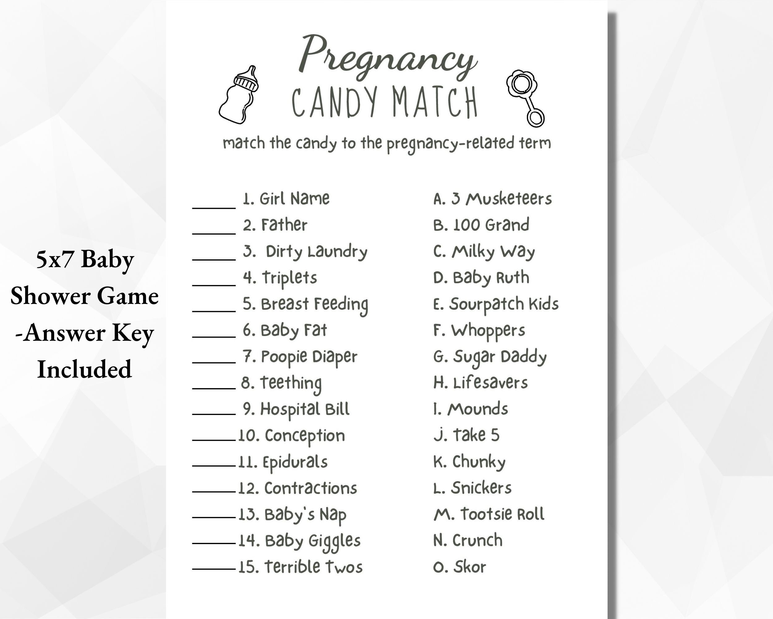 In conclusion, the candy match game is a fantastic choice for a baby shower game that is sure to be a hit with your guests. With its simple setup, interactive nature, and universal appeal, this game is a must-have for any baby shower celebration. So why wait? Download your free printable game cards today and get ready to watch your guests enjoy a sweet and memorable time at the baby shower!