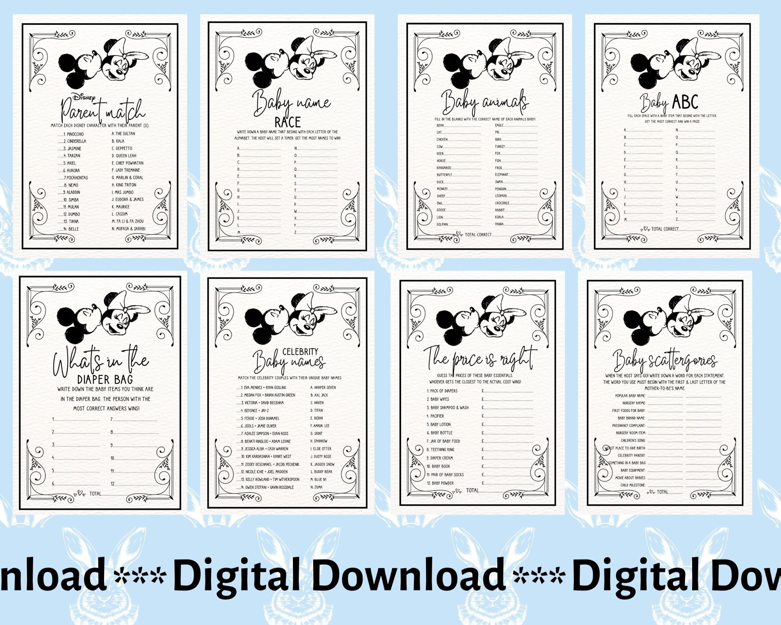 One popular game that you can download and print for free is the Disney Baby Shower Bingo. This game features iconic Disney characters on each bingo card, making it a fun and interactive way to entertain your guests. Another great option is the Disney Baby Shower Word Scramble, where guests must unscramble Disney-themed words to win prizes. These games are not only entertaining but also easy to set up and play, making them perfect for any Disney-themed baby shower.