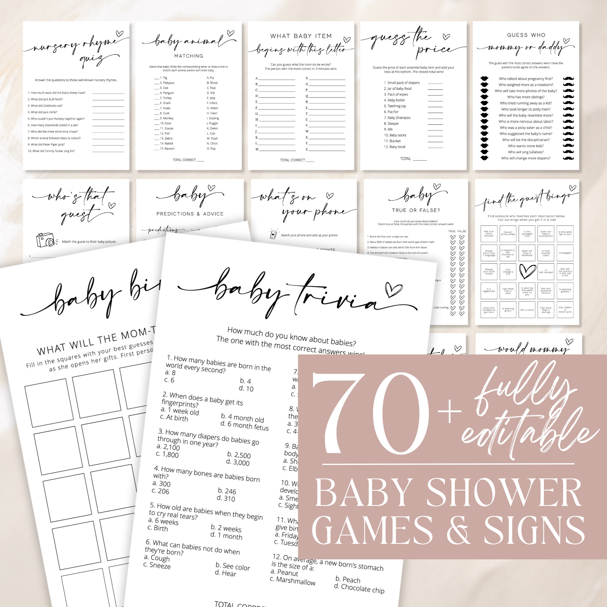 Another advantage is the cost-effectiveness of printable games. While some baby shower games can be expensive, especially if you’re buying them from a party supply store, printable games on Etsy are often offered for free or at a very affordable price. This allows you to stay within your budget while still providing entertainment for your guests.