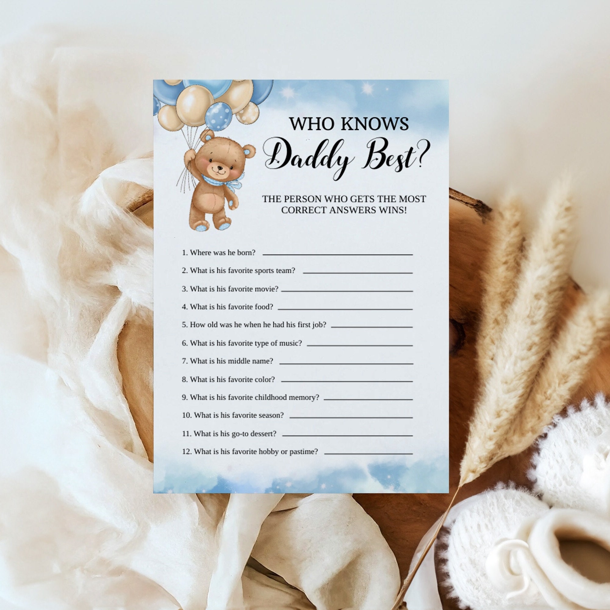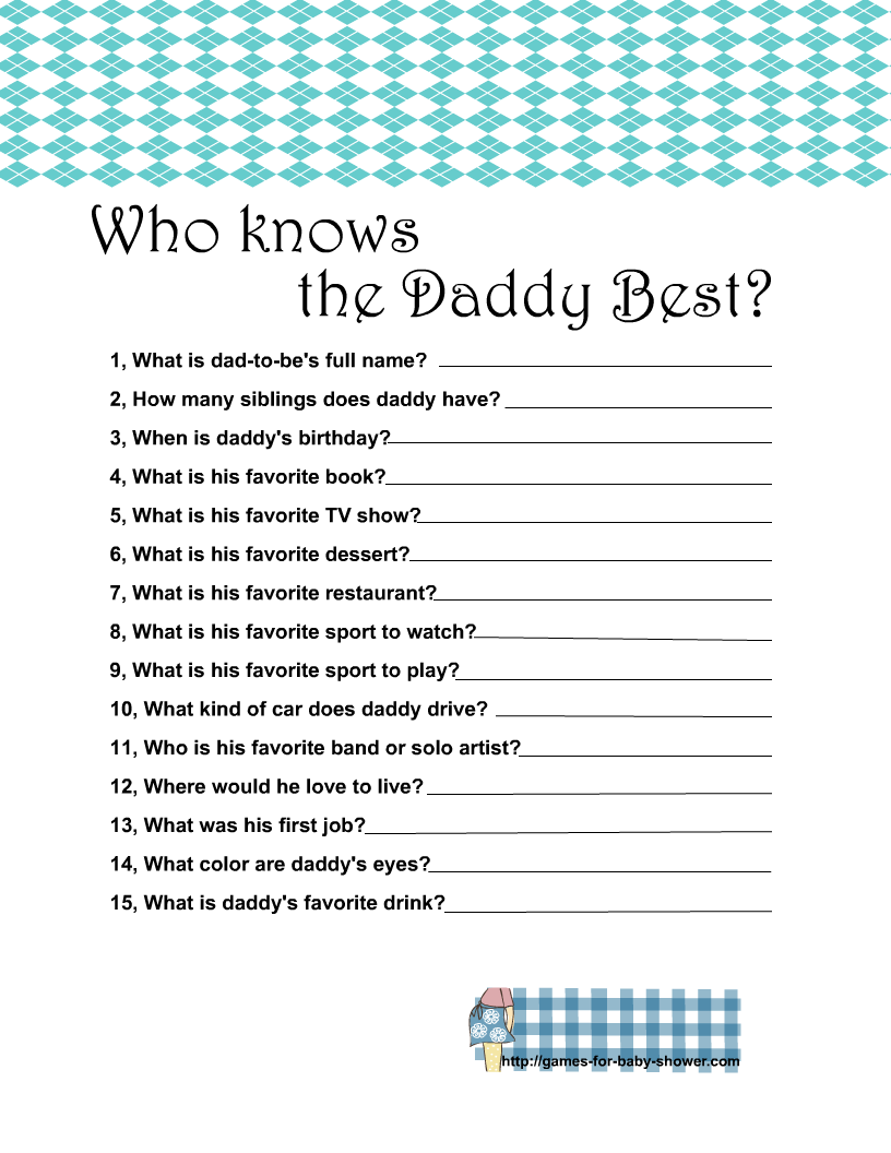Free Printable Baby Shower Games: Who Knows Daddy the Best