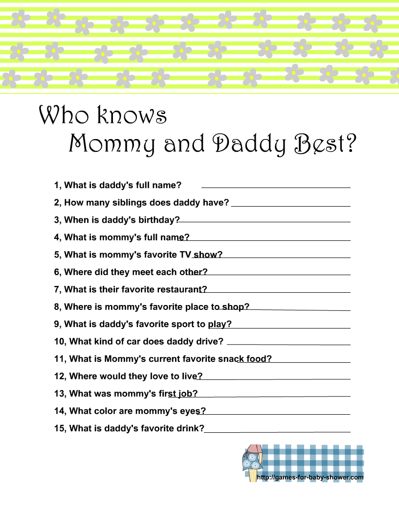 Free Printable Baby Shower Games: Who Knows Mommy the Best
