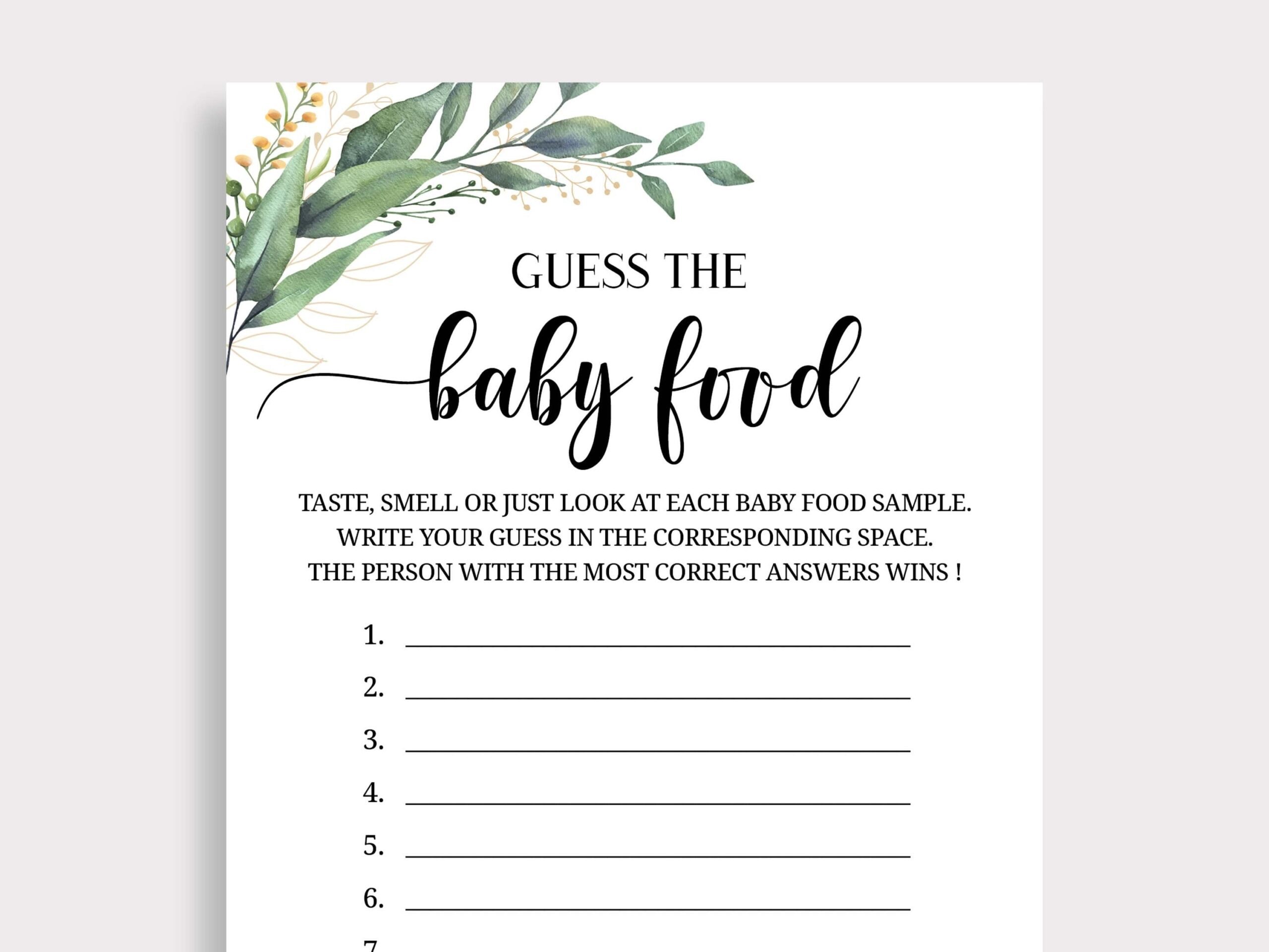 Free Printable Baby Shower Guess the Baby Food Game