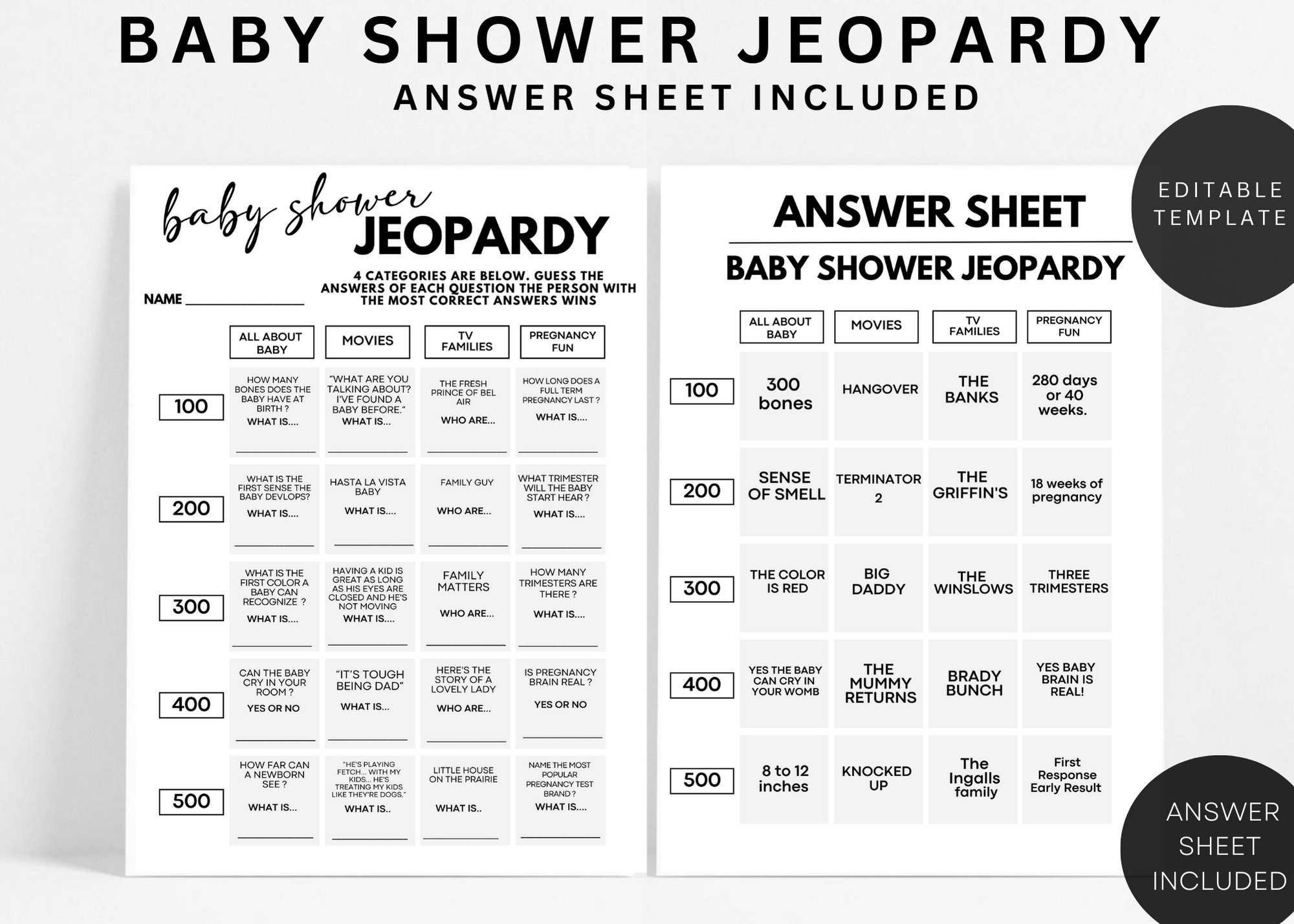 To get started, simply download and print out the free printable Baby Shower Jeopardy game cards. You can find a variety of templates online that are ready to be customized with your own questions and categories. You can also personalize the game by adding the names of the parents-to-be or other fun baby-related trivia.