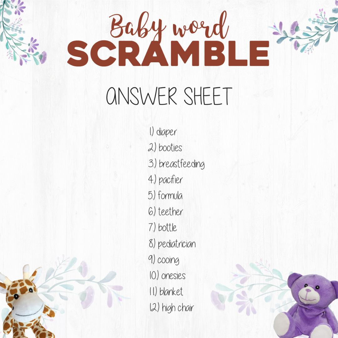 In conclusion, the free printable baby shower scramble game with answers is a fantastic addition to any baby shower. It’s easy to set up, fun to play, and sure to be a hit with your guests. So go ahead and download your printable game today, and get ready to enjoy a memorable and entertaining baby shower!