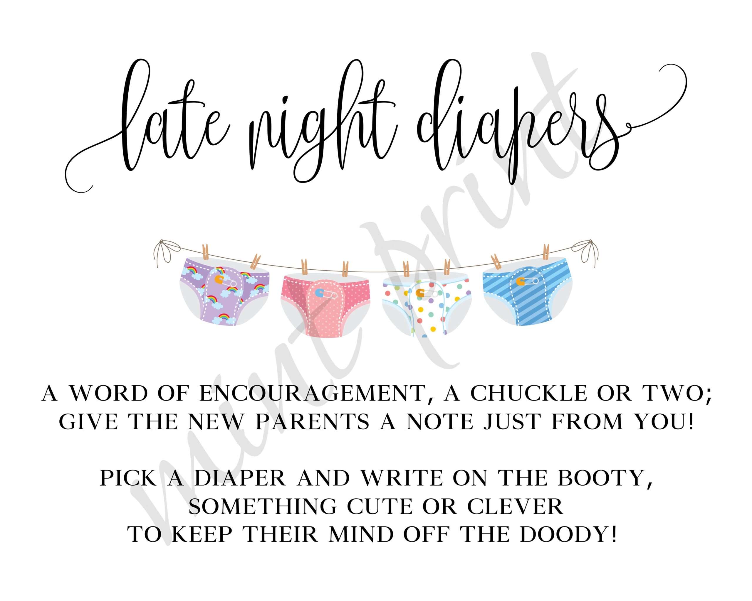 Our free printable baby shower sign is designed to make it easy for guests to participate in the diaper signing game. Simply download and print out the sign, set up a station with diapers and markers, and let the creativity flow!