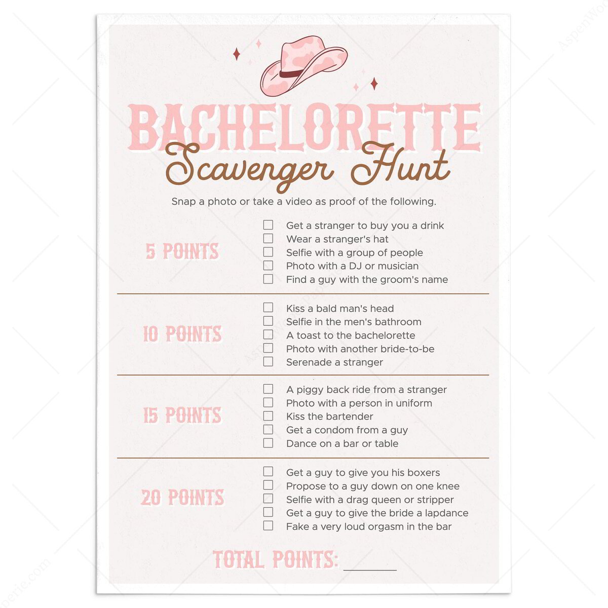 Free Printable Bachelorette Party Scavenger Hunt Games