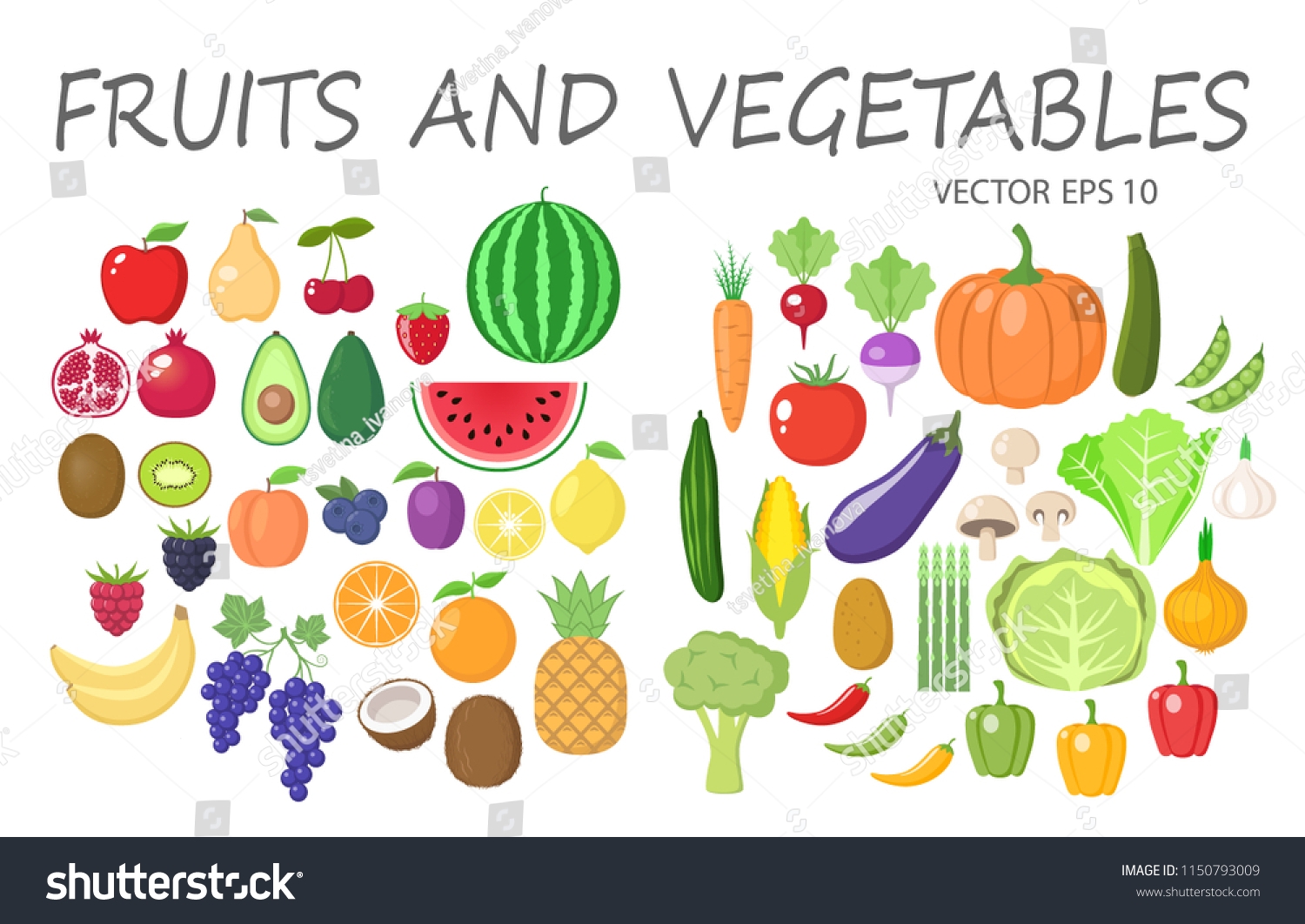 Colorful Fruits Vegetables Clipart Set Fruit Stock Vector Royalty