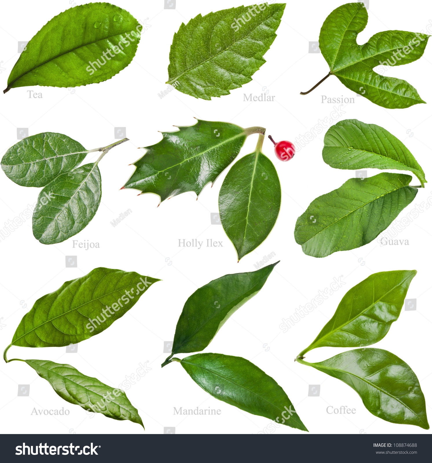 Collection Set Green Fresh Leaves Fruit Stock Photo 108874688