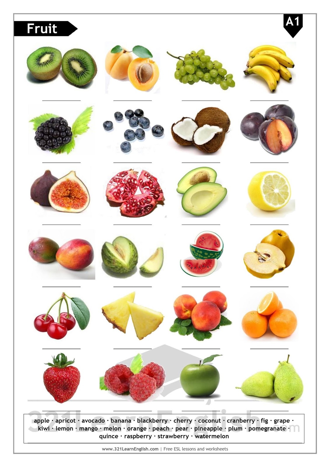321 Learn English ESL Vocabulary Fruit basic level A1