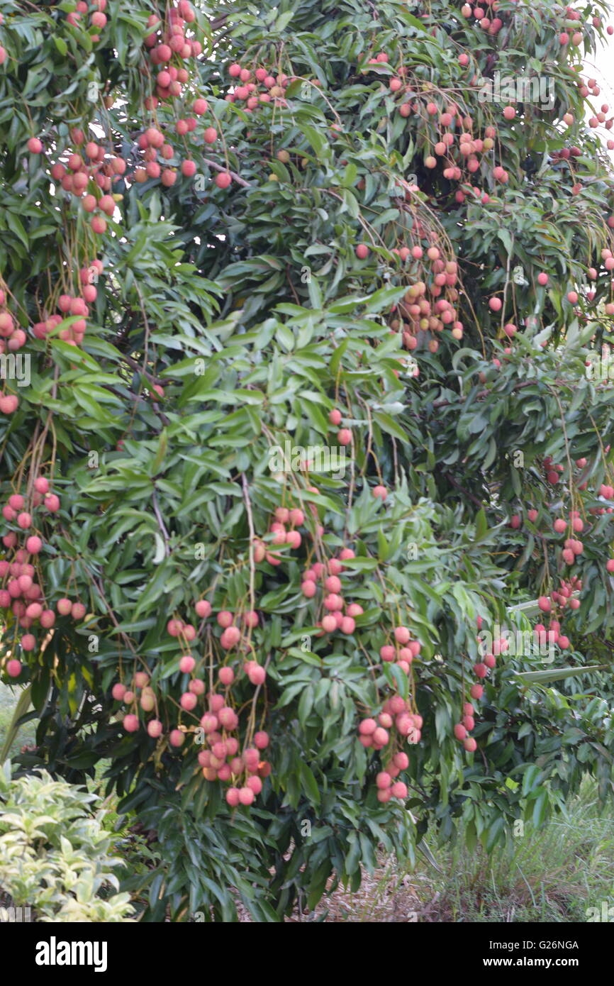 The papaya tree is known for its large, palm-like leaves and long, cylindrical fruits. Papayas are rich in vitamins and enzymes that aid digestion. The tree is easy to grow and is a favorite among home gardeners.