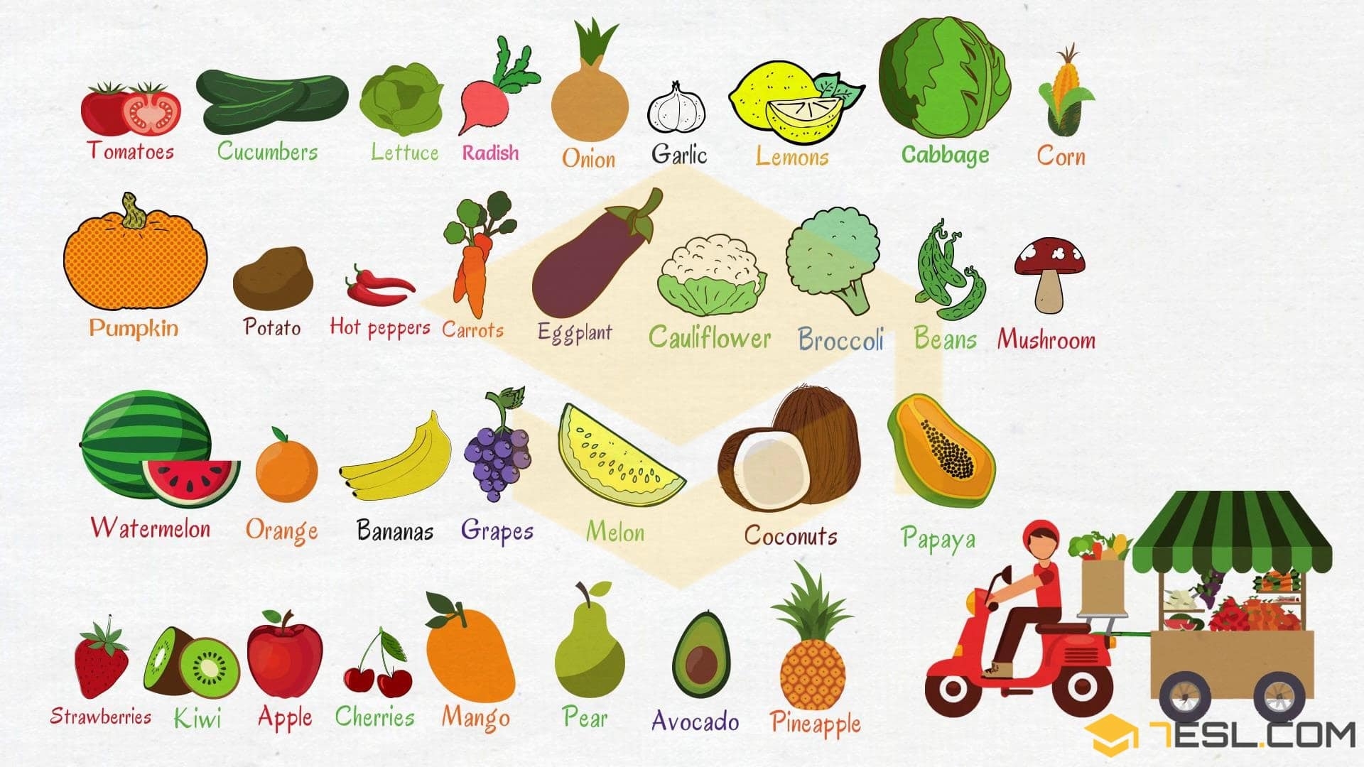 Individual Fruits and Vegetables Pictures with Name