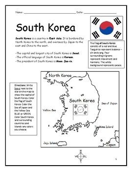 South Korea Introductory Geography Worksheet Geography Worksheets