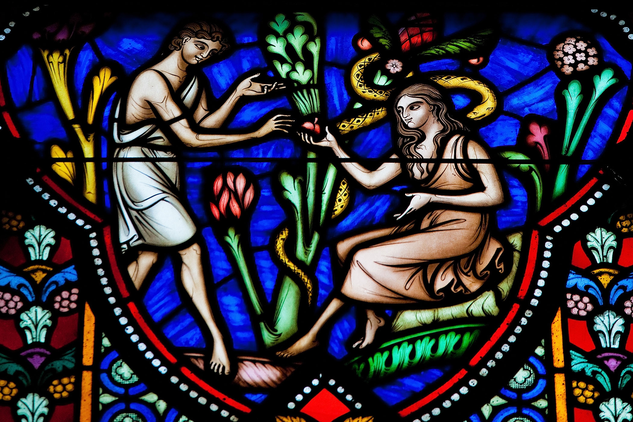 Adam and Eve are often depicted as reaching out to take the fruit, their faces filled with curiosity and desire. The scene is typically set in a lush garden, with vibrant colors and intricate details that draw viewers into the story.