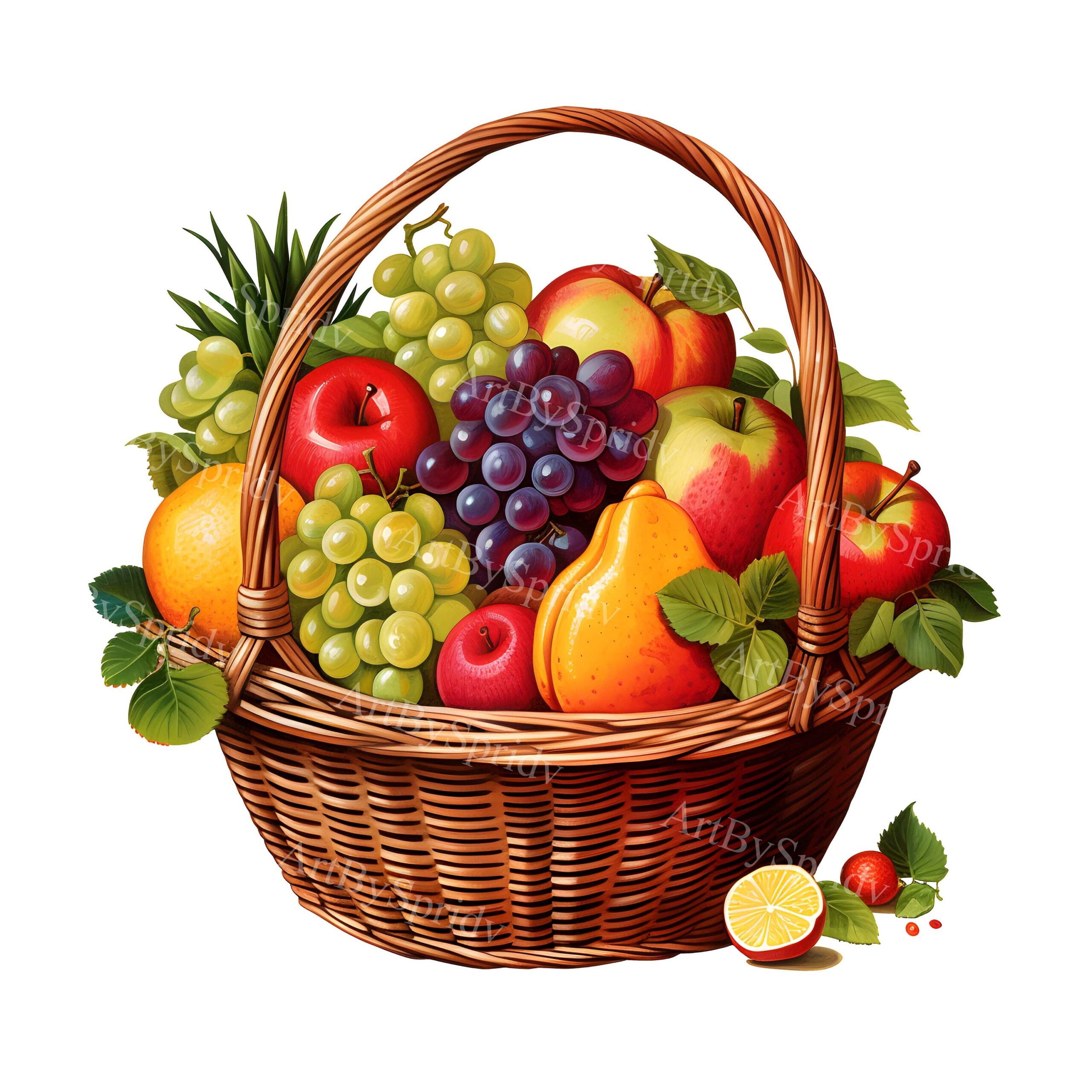 Now, let’s take a closer look at the picture of a fruit basket. The basket is overflowing with a variety of fruits such as apples, oranges, bananas, grapes, and strawberries. The fruits are arranged in a visually appealing way, with the colors complementing each other perfectly.