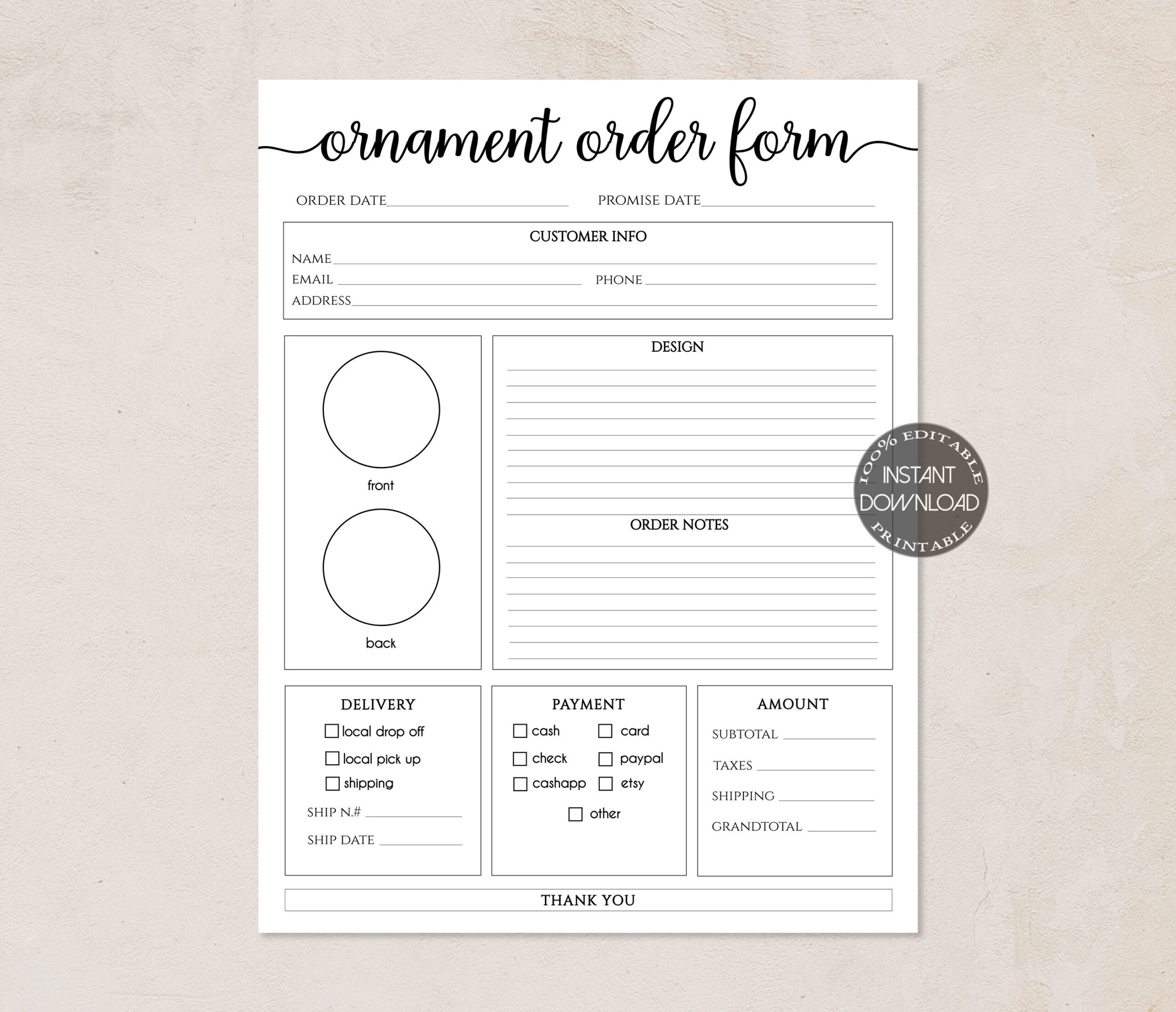 With our free template, you can focus on what you do best – creating beautiful crafts. Let the order form take care of the administrative tasks and allow you to concentrate on your passion.